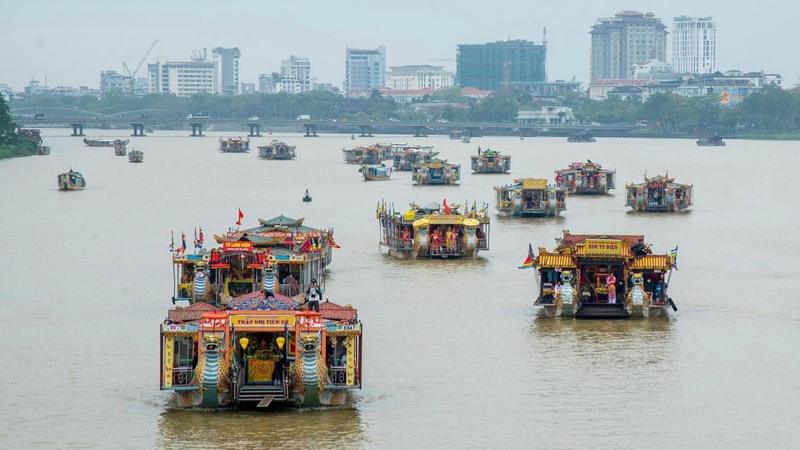 Nét đặc sắc nhất của Lễ hội Điện Huệ Nam là hoạt động rước Thánh bằng thuyền trên sông Hương.